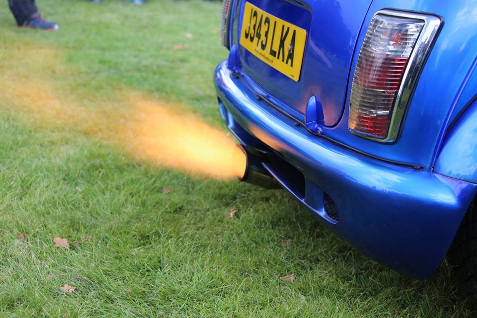 Flaming Mini Exhaust at the Mini And VW Bus Meet