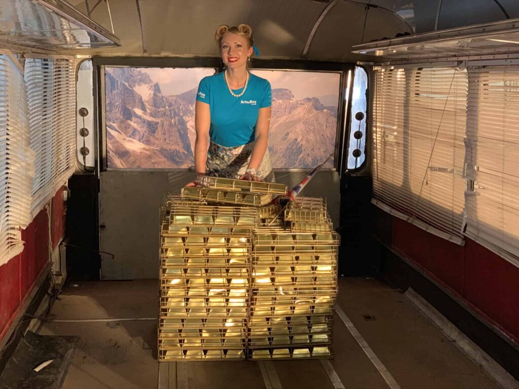 Once the lads have the gold, they jumped into the Ford Thames Trader minibus singing, “This is the self preservation society,”